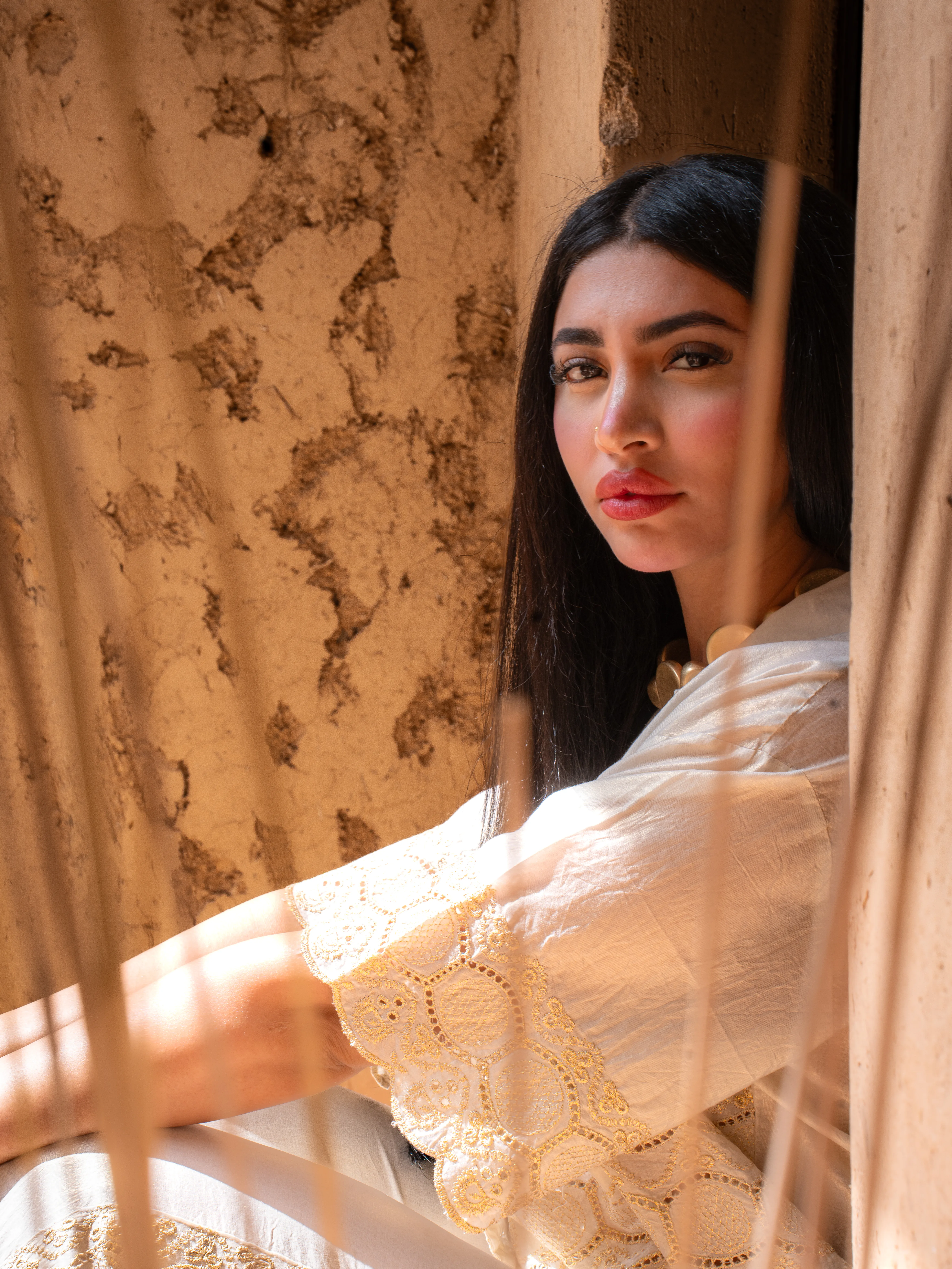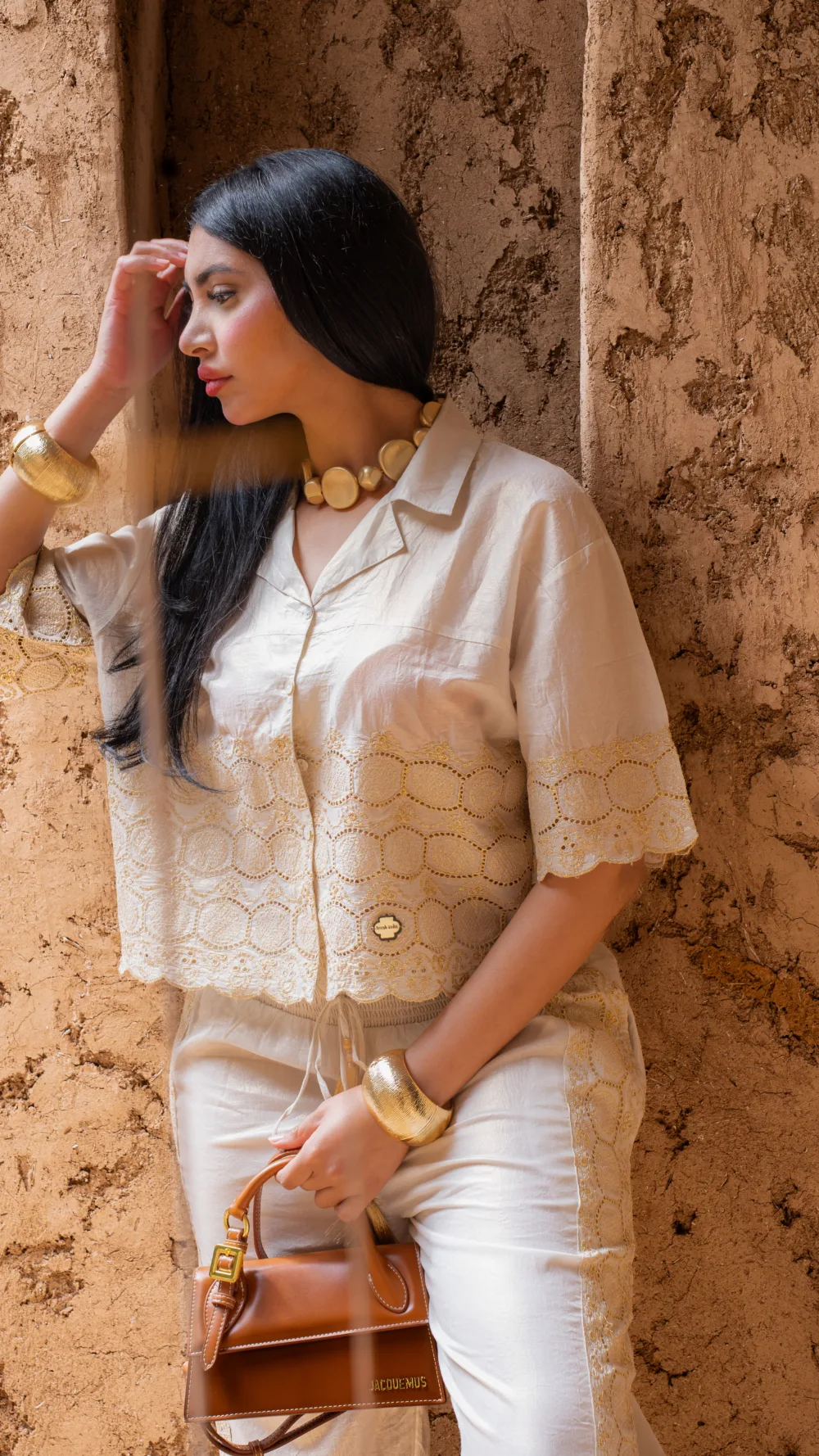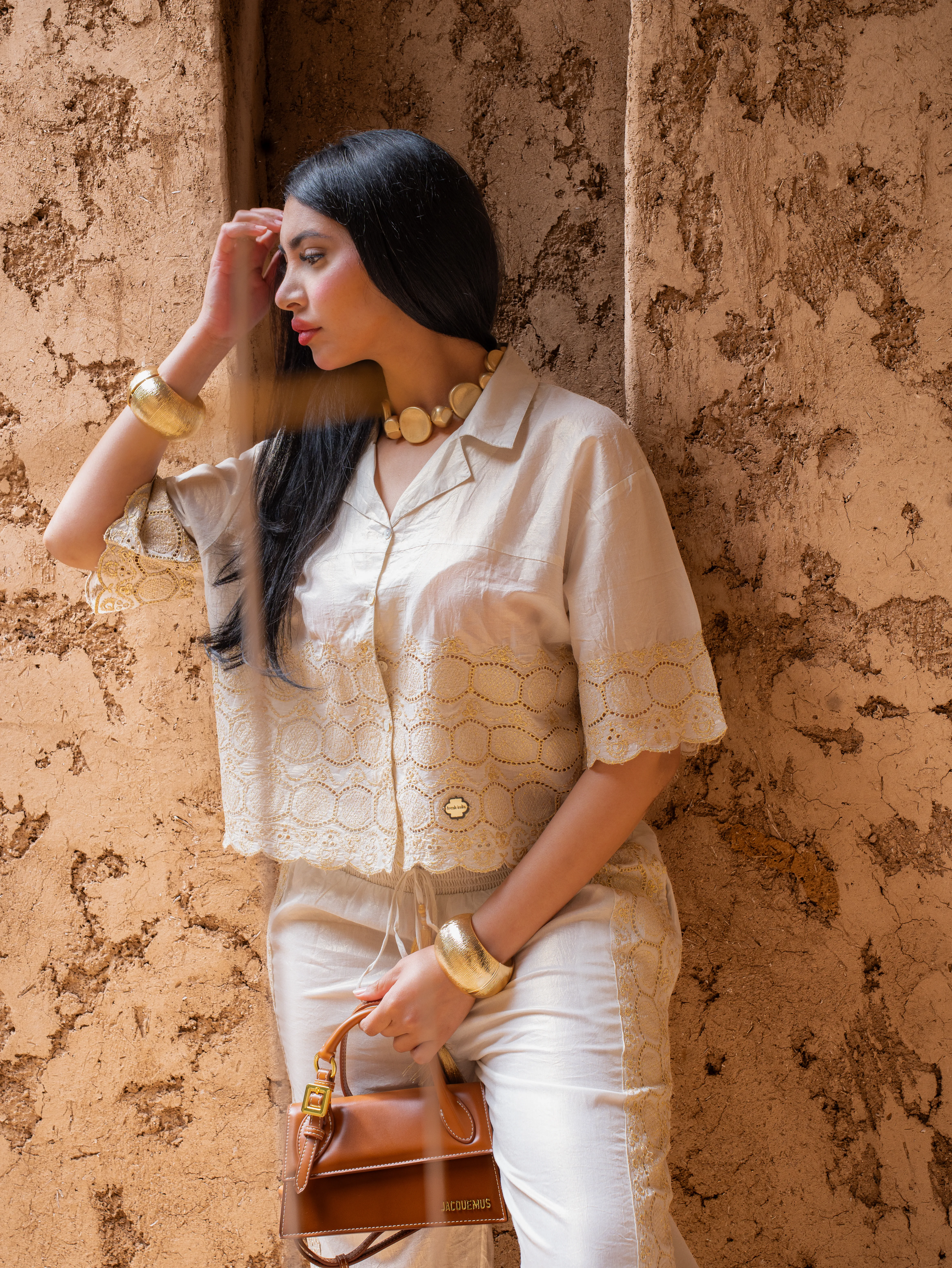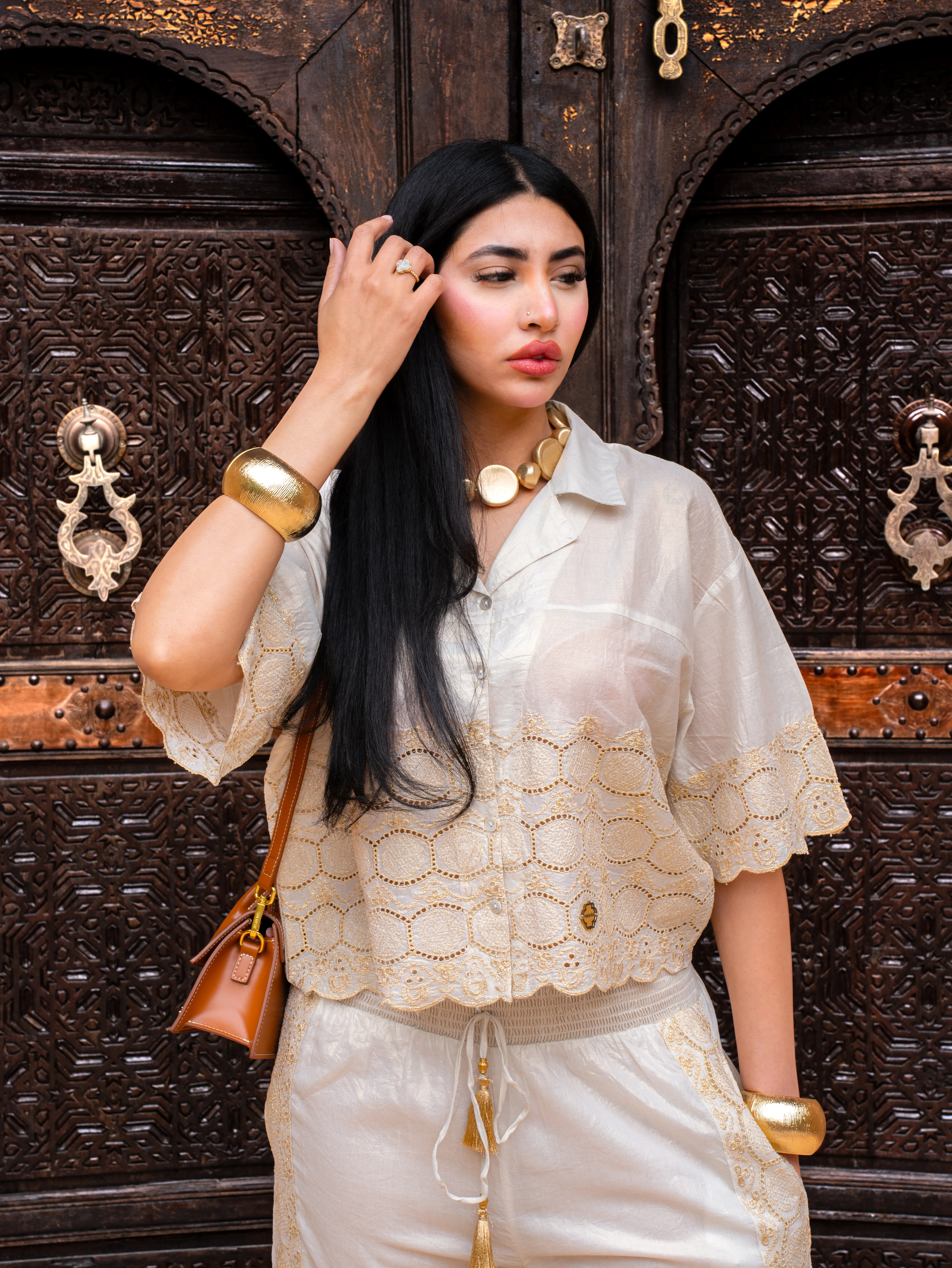 Tessuto 100% cotone leggerissimo, completamento placcato oro