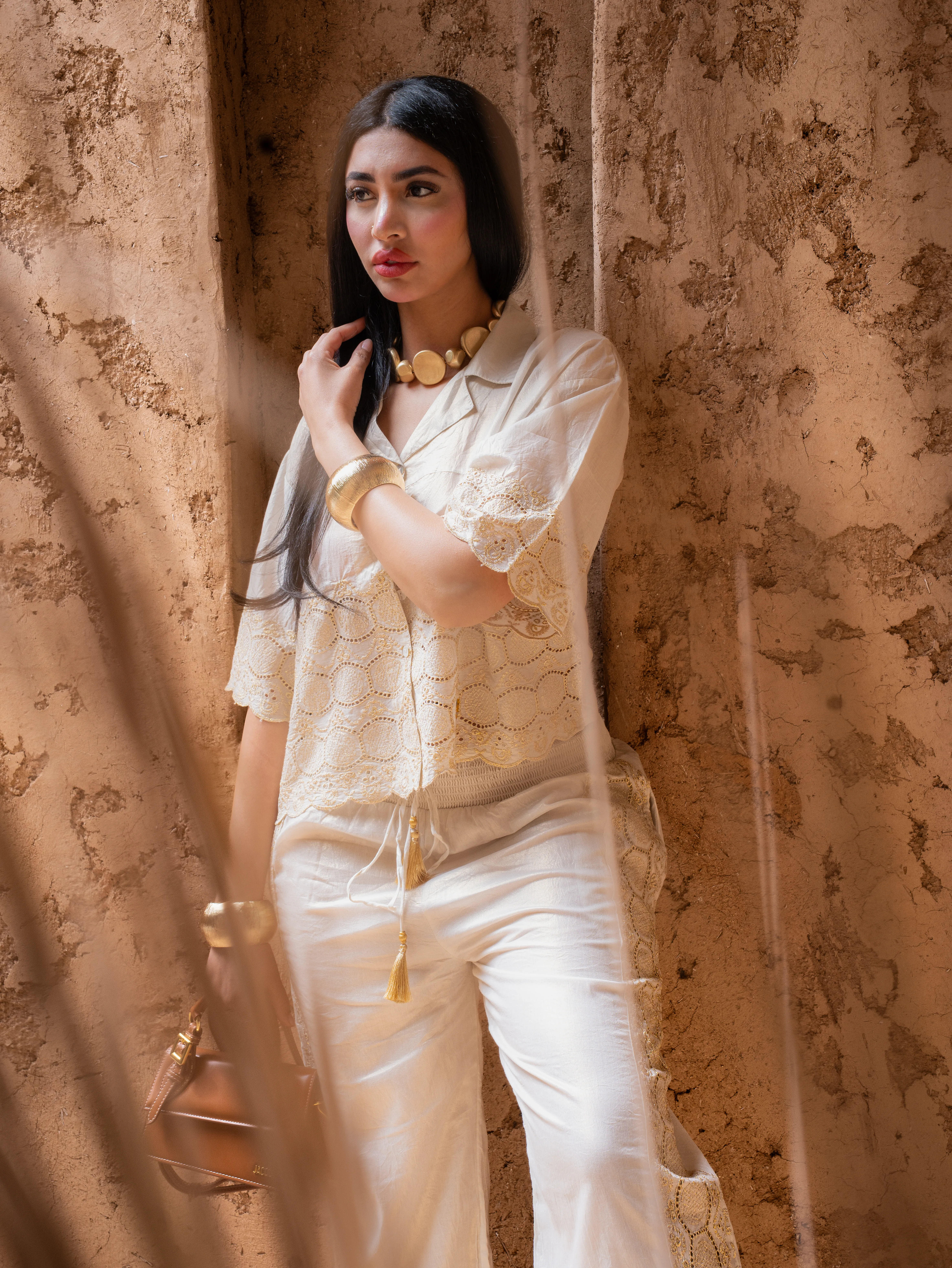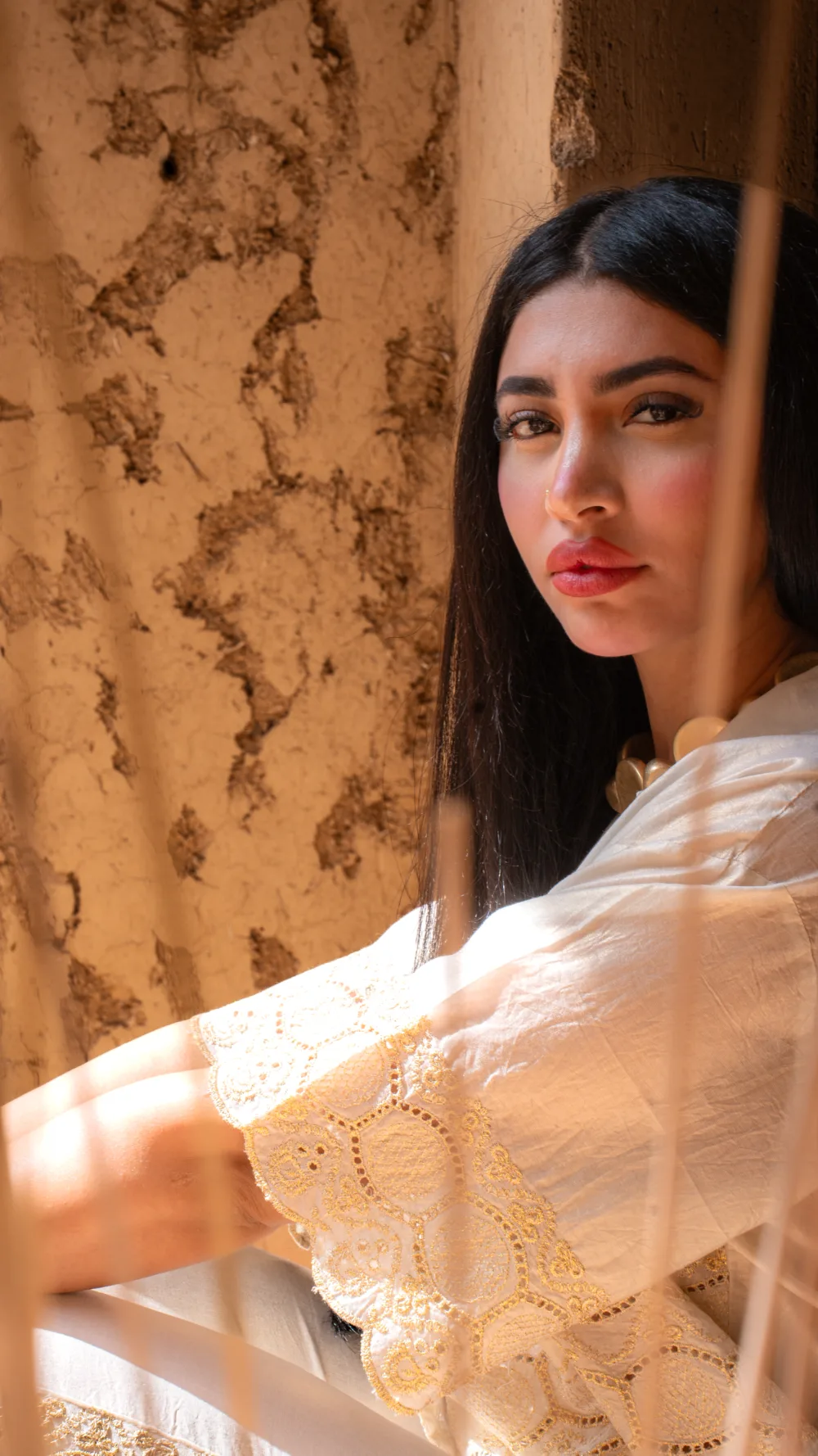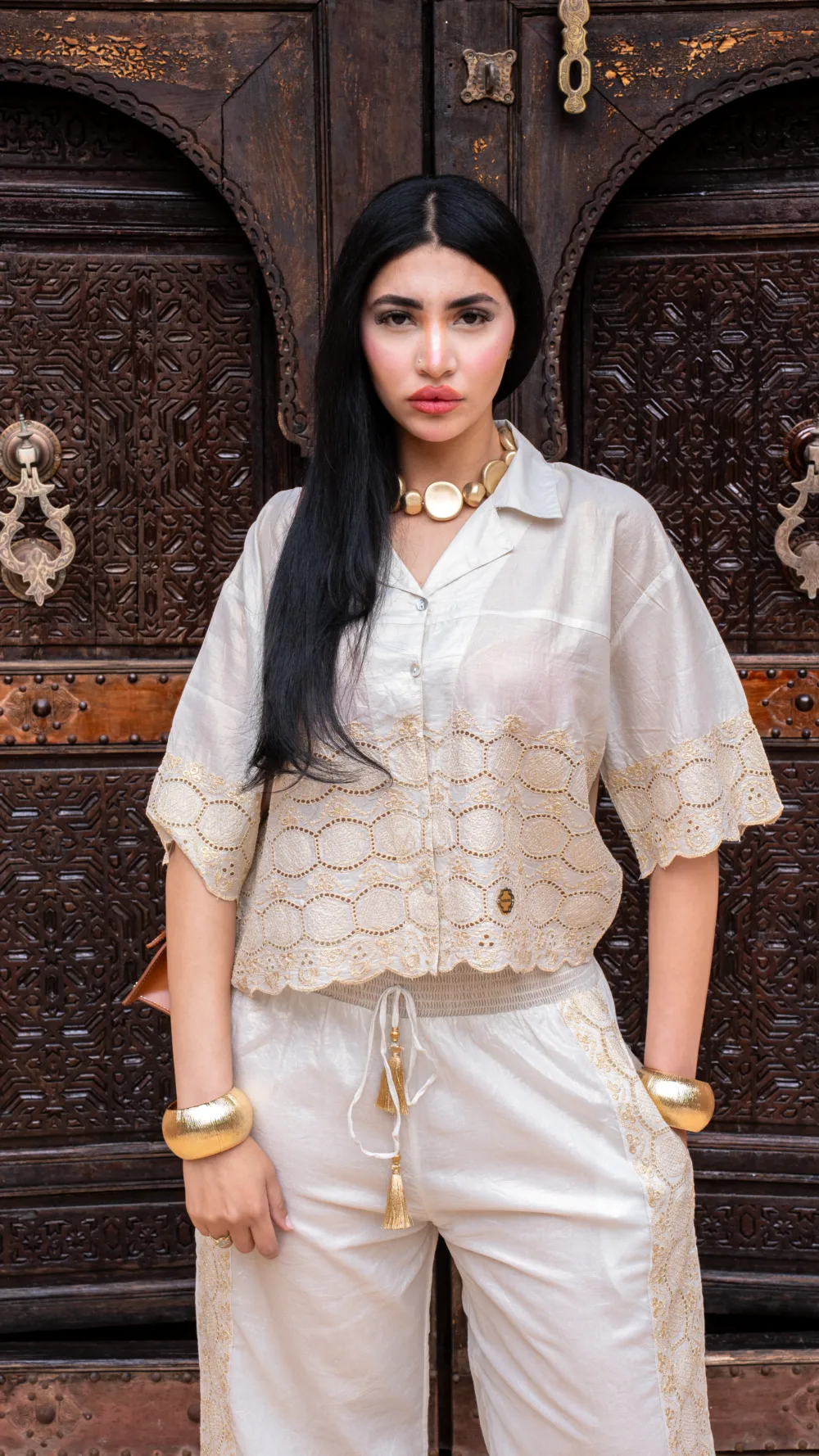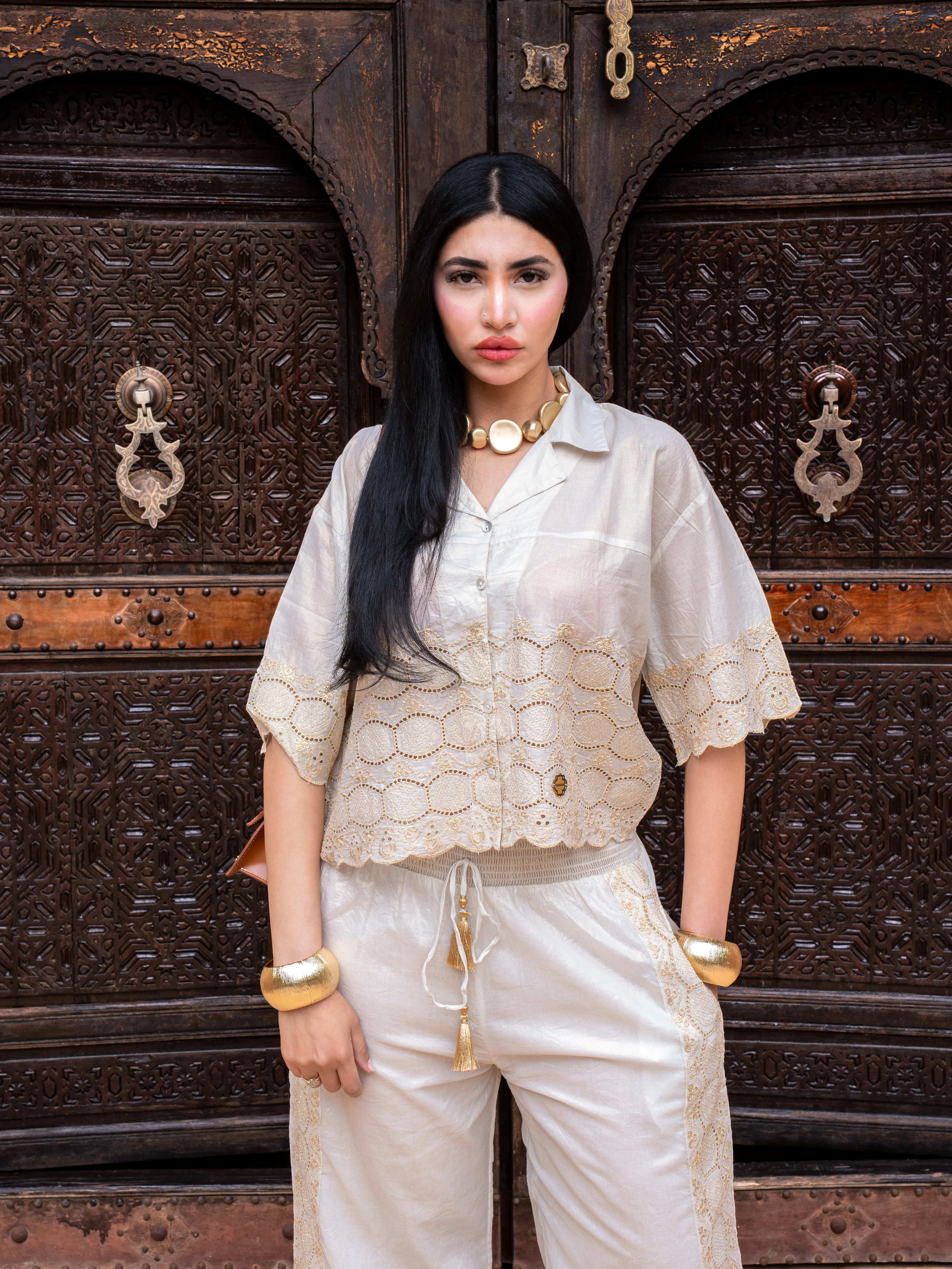 Tessuto 100% cotone leggerissimo, completamento placcato oro
