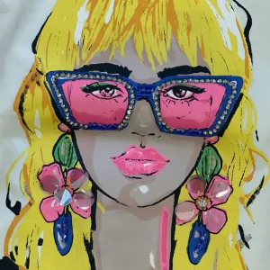 Felpa in cotone garzato con stampa e applicazioni di peli e e paillettes