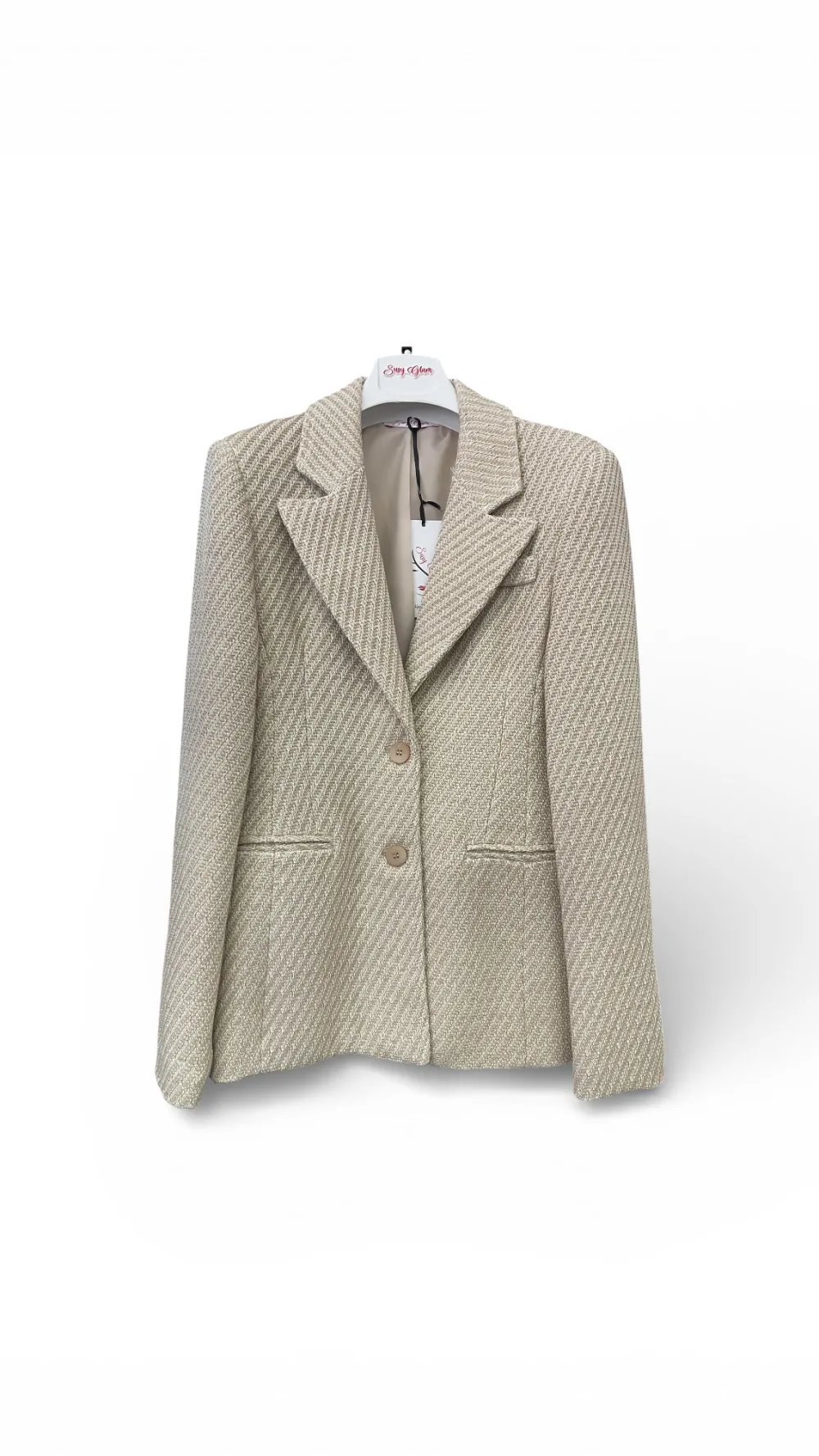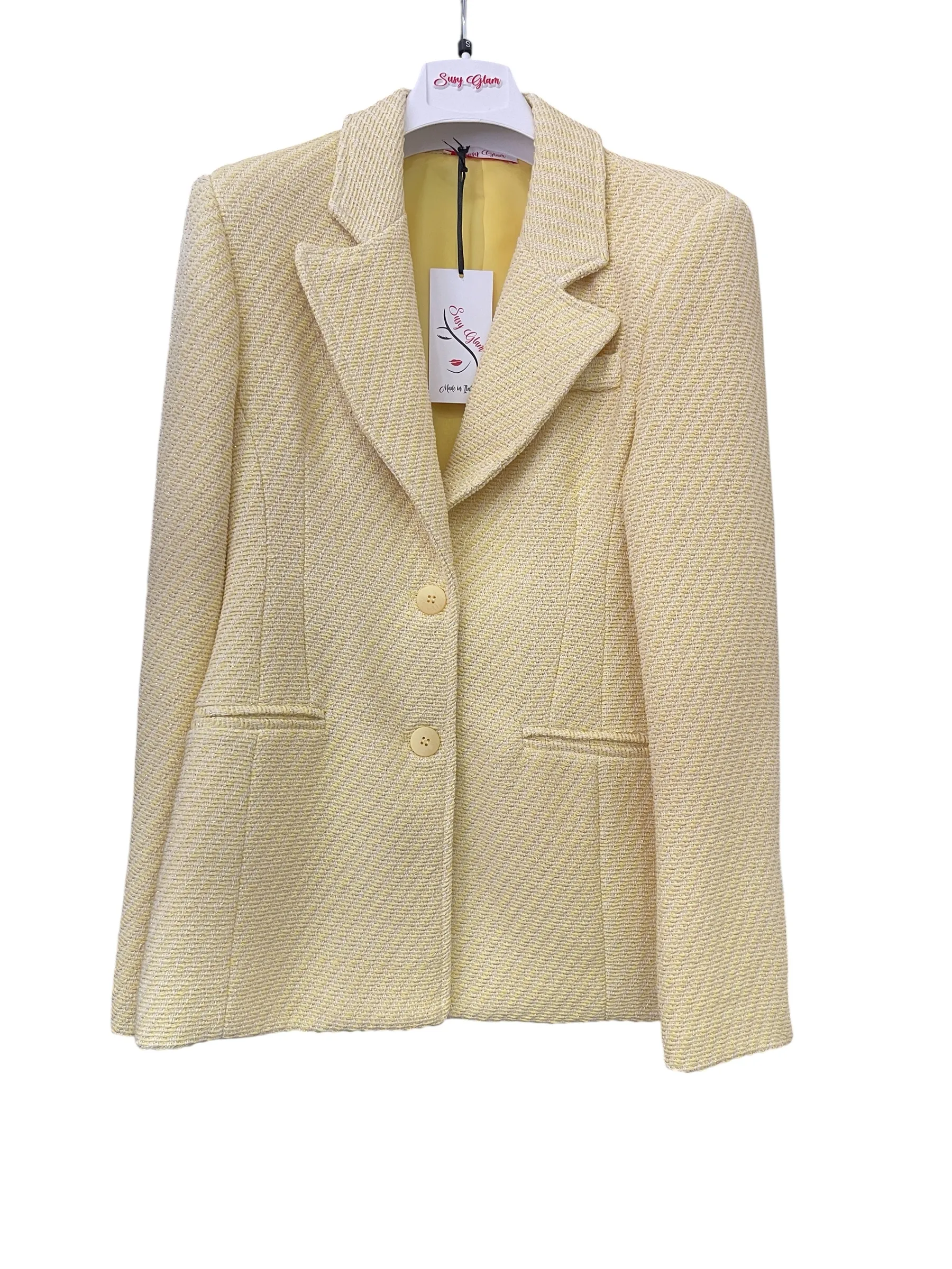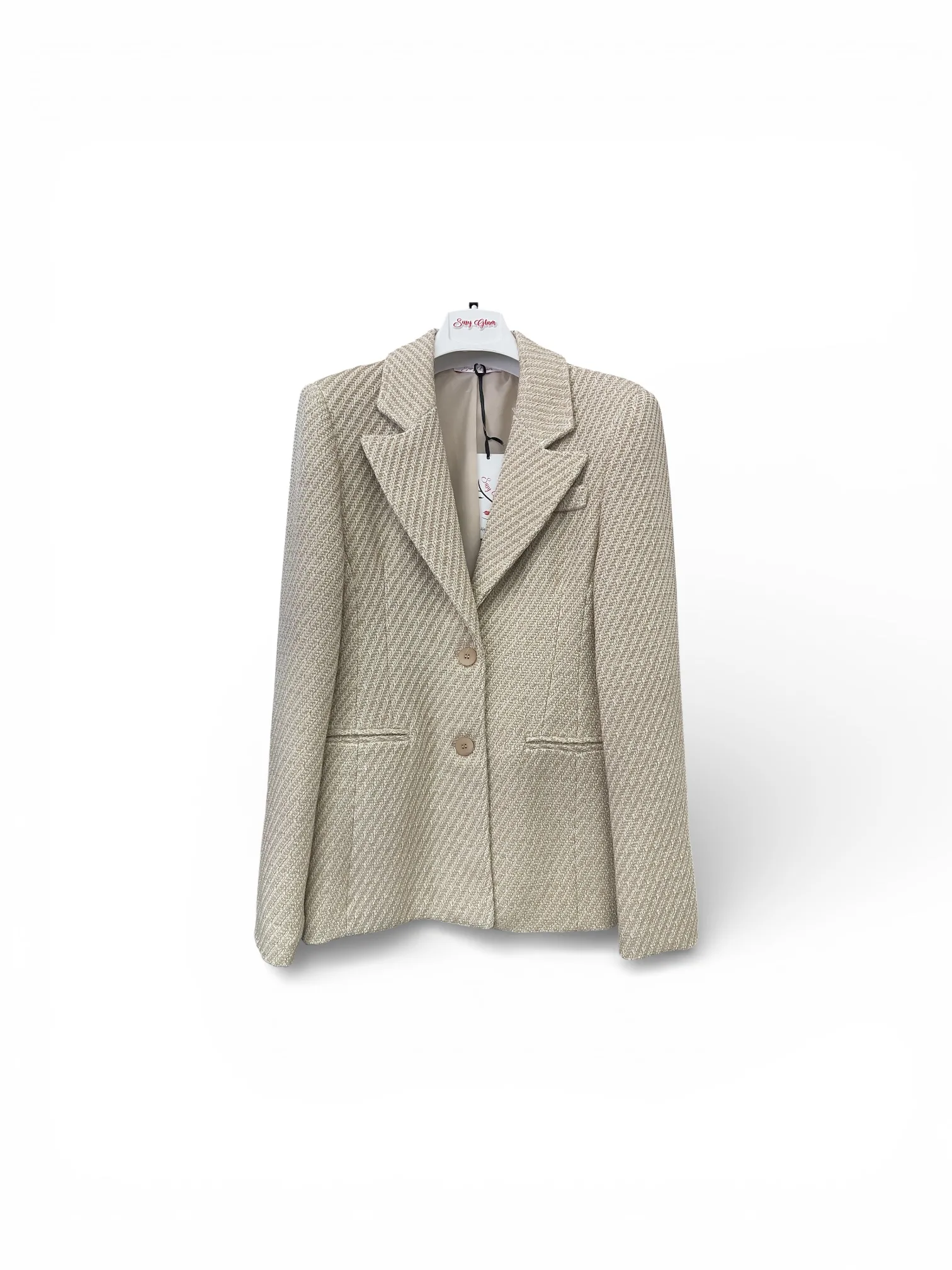 Giacca strutturata con spalline, foderata due bottoni avvitata, tessuto chanel con filamenti in lurex