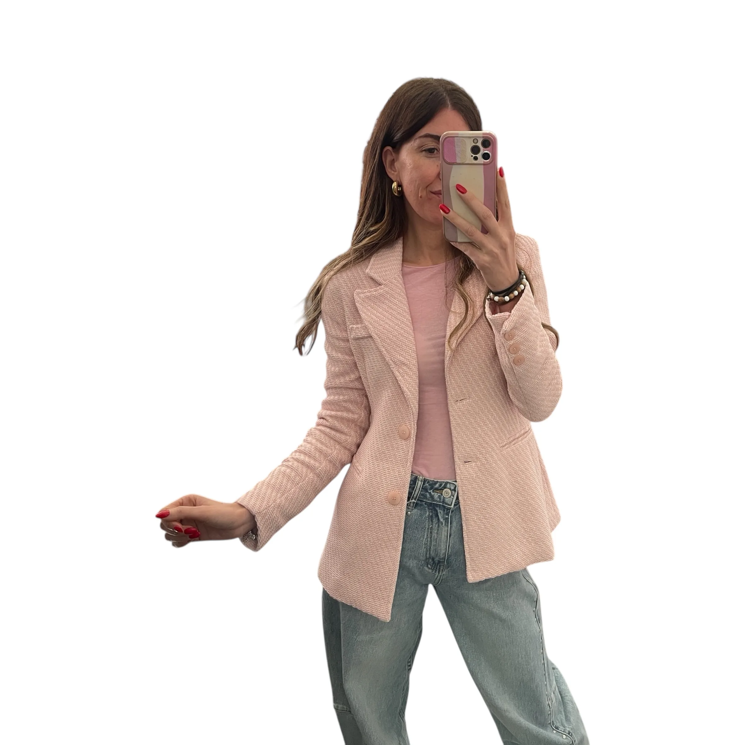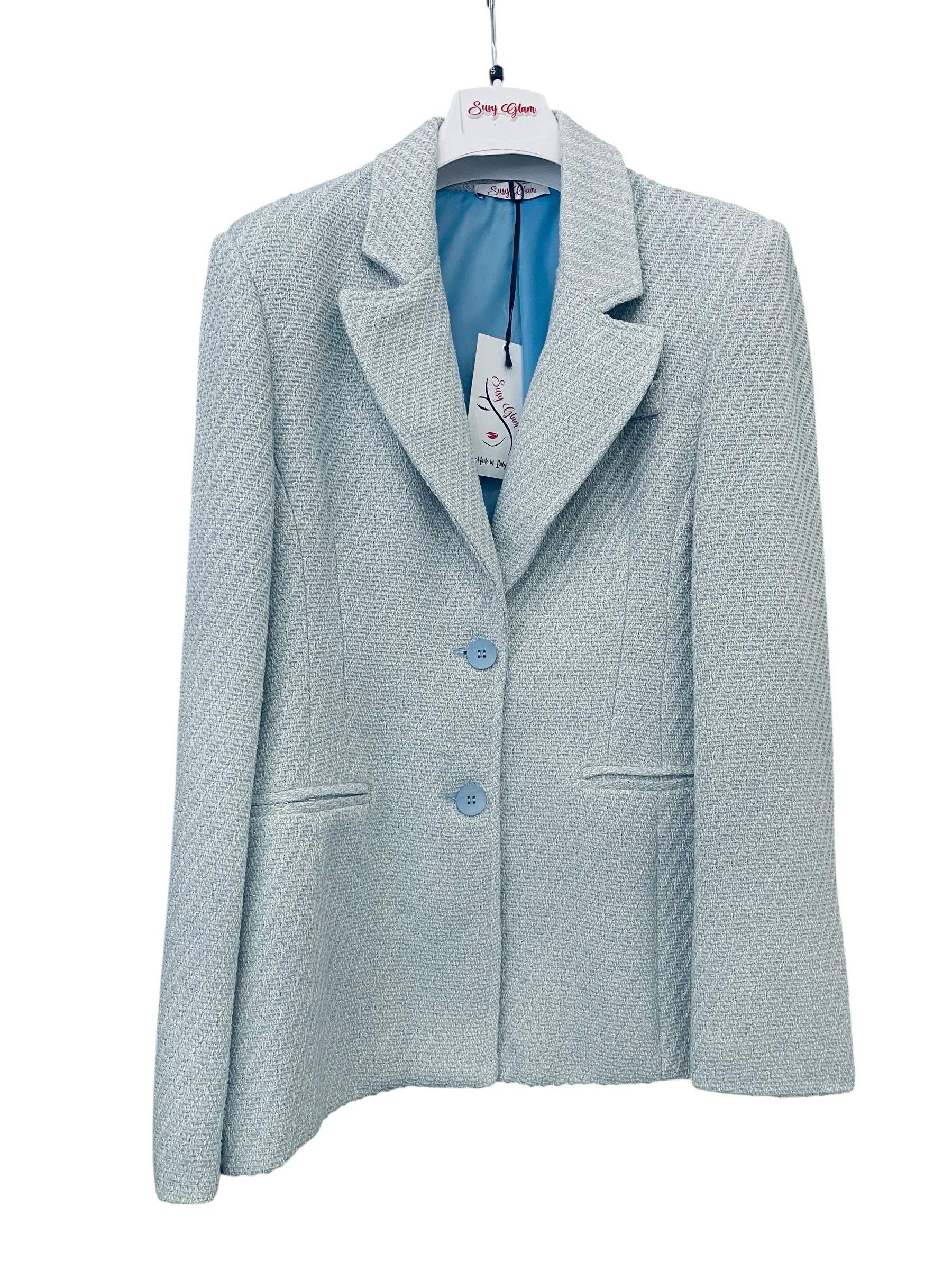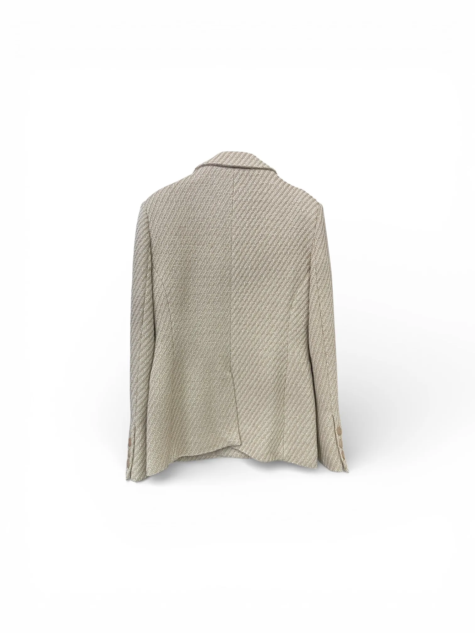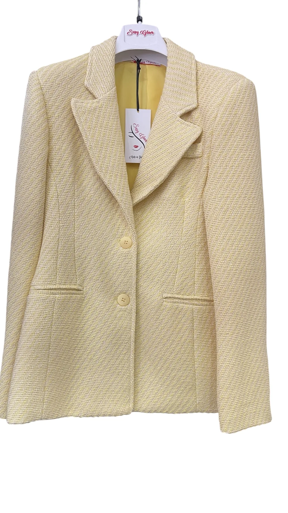 Giacca strutturata con spalline, foderata due bottoni avvitata, tessuto chanel con filamenti in lurex