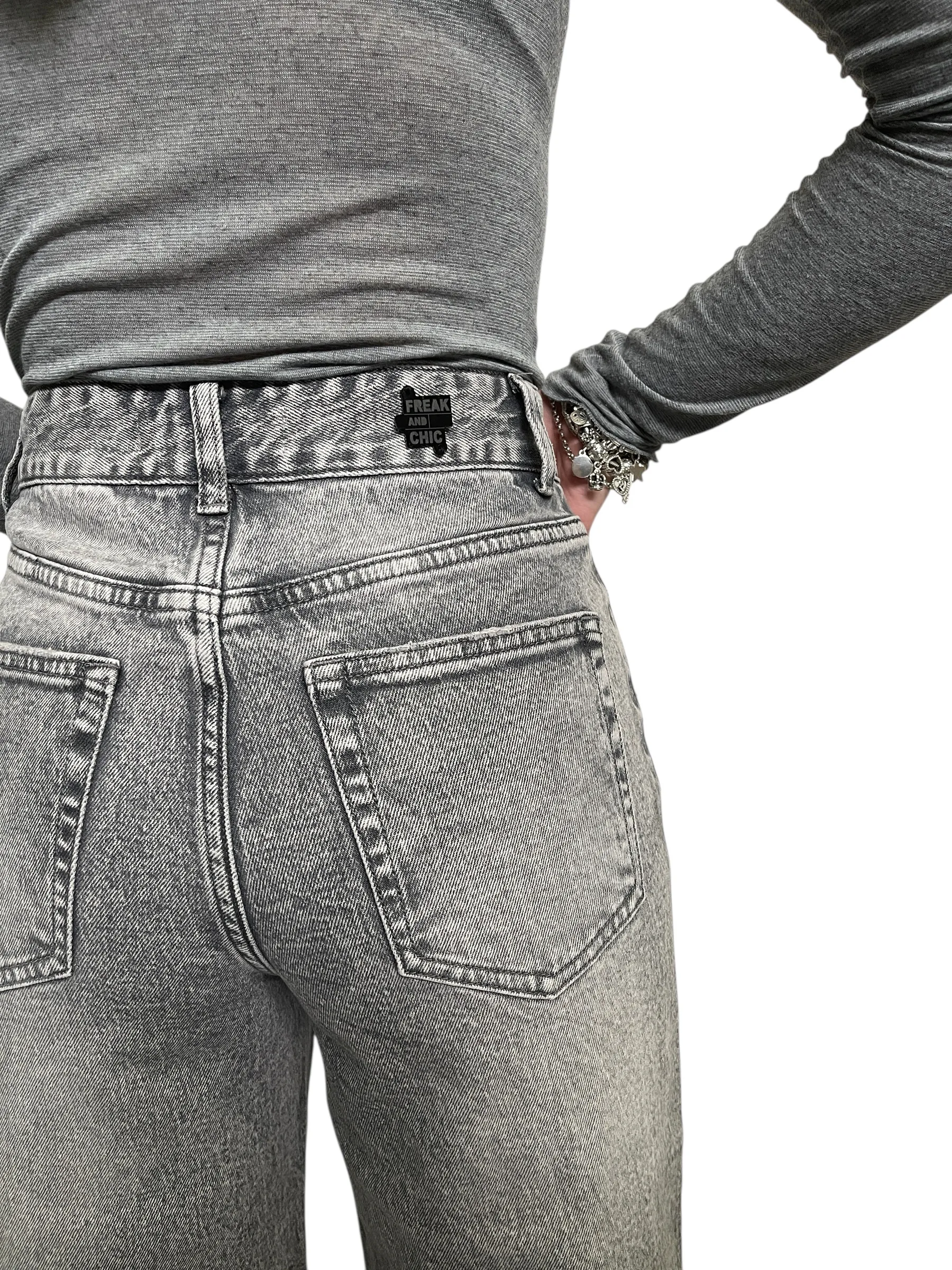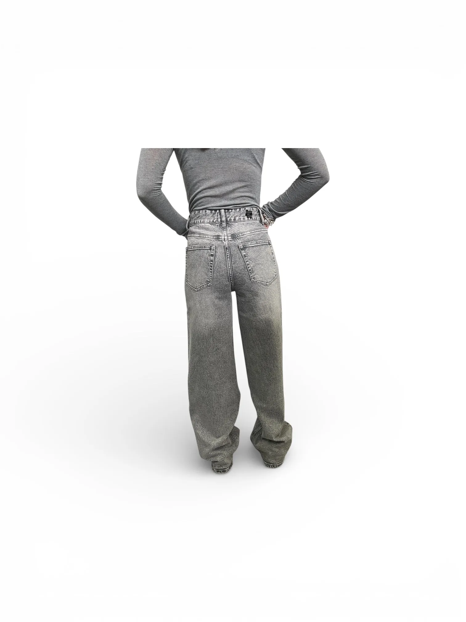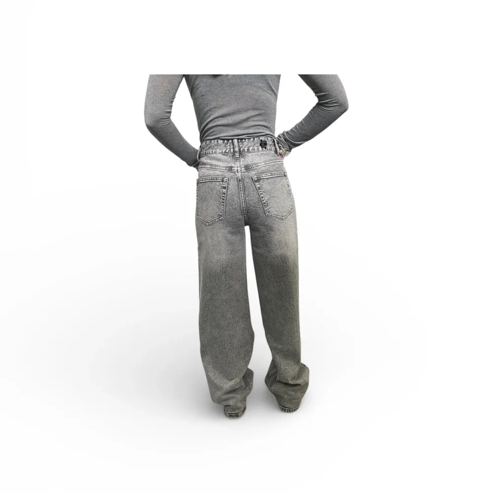Jeans con vestibilita’ regolare e tessuto fisso. Colore grigio strass neri